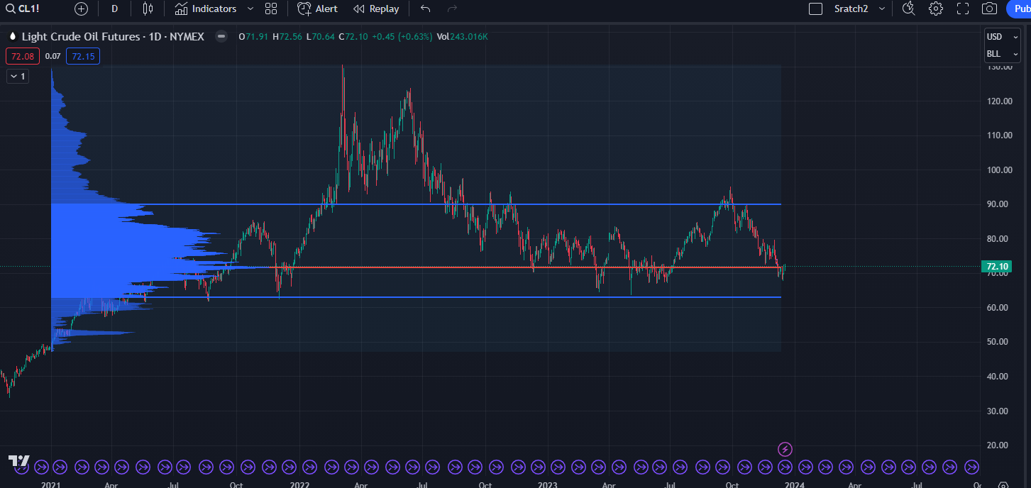 Even if crude isn’t a long from here, it certainly isn’t wise to short the hole. That also put crude just below a 3 year VPOC. Anything you find interesting about this 3 year profile?