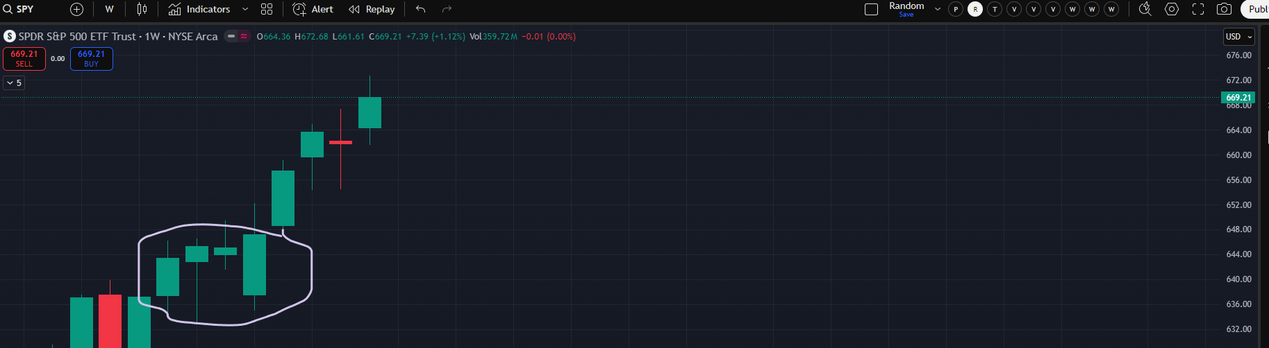 Taking out last week’s low would bring the weekly timeframe into balance. If 6676-6680 is lost (I think we still need to monitor for a LBAF like last week) then 6650-6653 is really the only thing protecting the 9/21 week and 9/14 week lows (effectively the FOMC day low). Even seeing this low would just form a 4-week balance which we last saw August into September. Those weeks were hilariously all green through we took out a prior week’s low twice (using SPY to illustrate for the sake of simplicity).