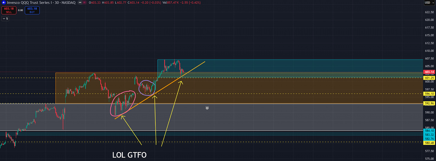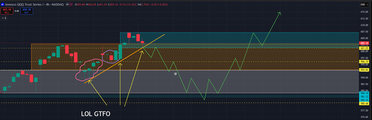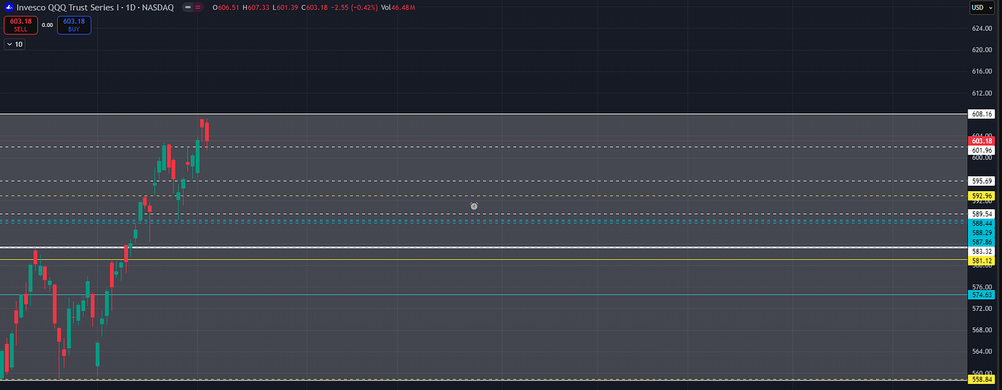 I also have a higher time frame NQ extension at 25253 in a similar area to 608.16 QQQ.