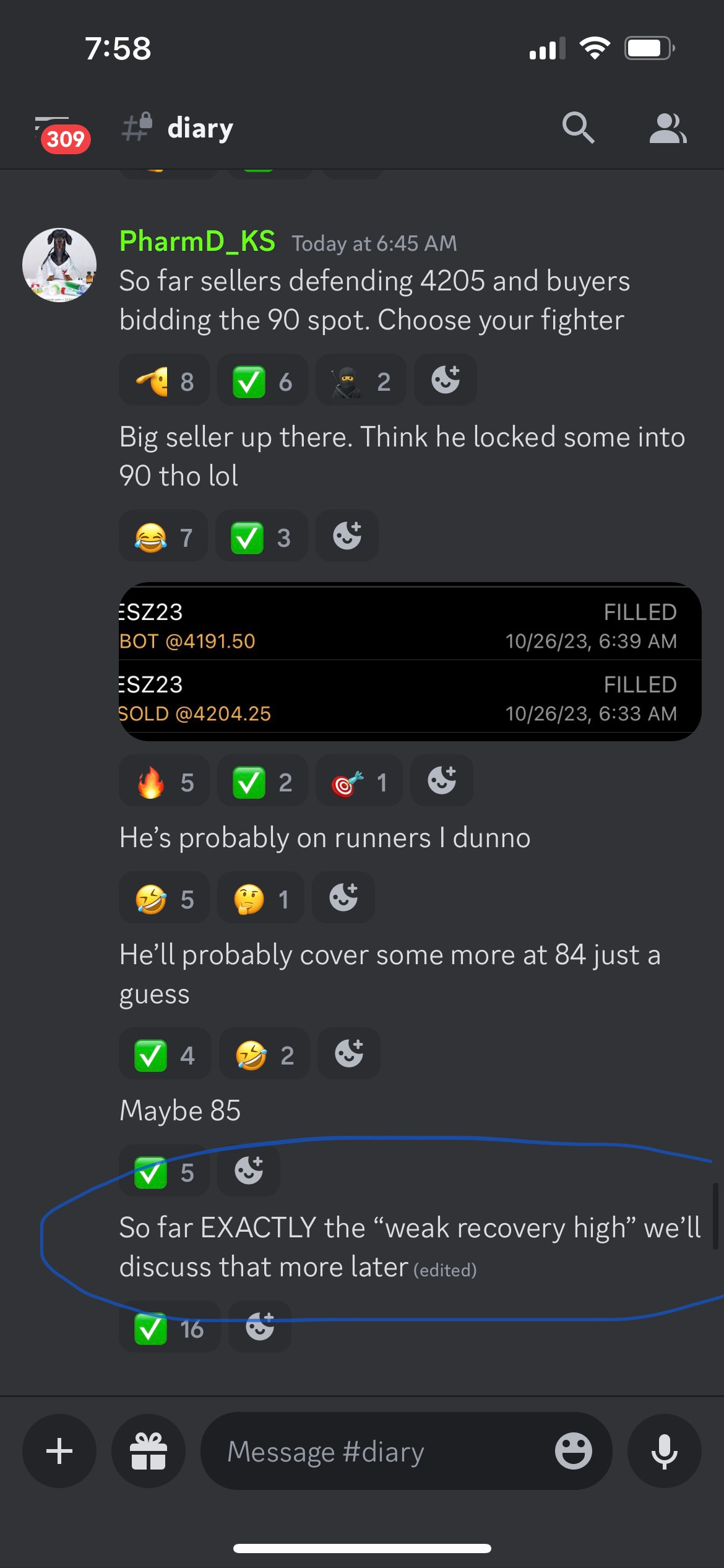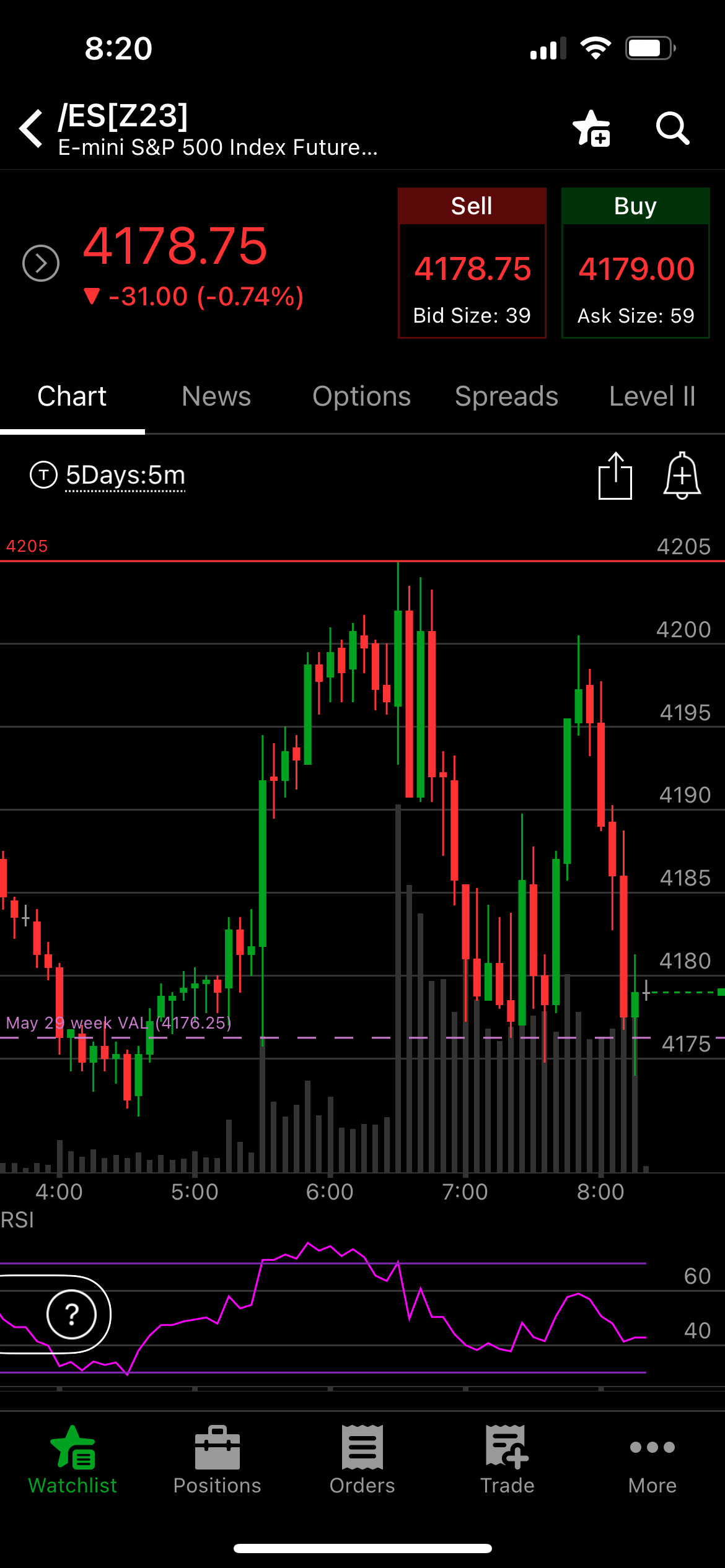 We shorted early morning high of day and trimmed all the way down for nearly 30 points, again. We had a little fun on the way down. We have started nibbling on some individual names at 4176 ES while we continue to short pops on the index intraday so we remain balanced and not overexposed.