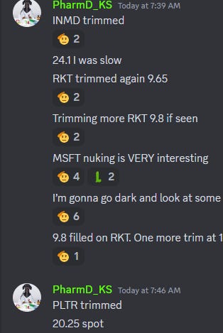 So if you want to learn my process over time and become a self sustaining investor and trader, while at the same time preserving and growing capital in a safe and effective manner, then join us. If you are looking for nothing but blind alerts on 10 trades per day, then truly one of the discords that charges 10x more to get it wrong all day might be for you.