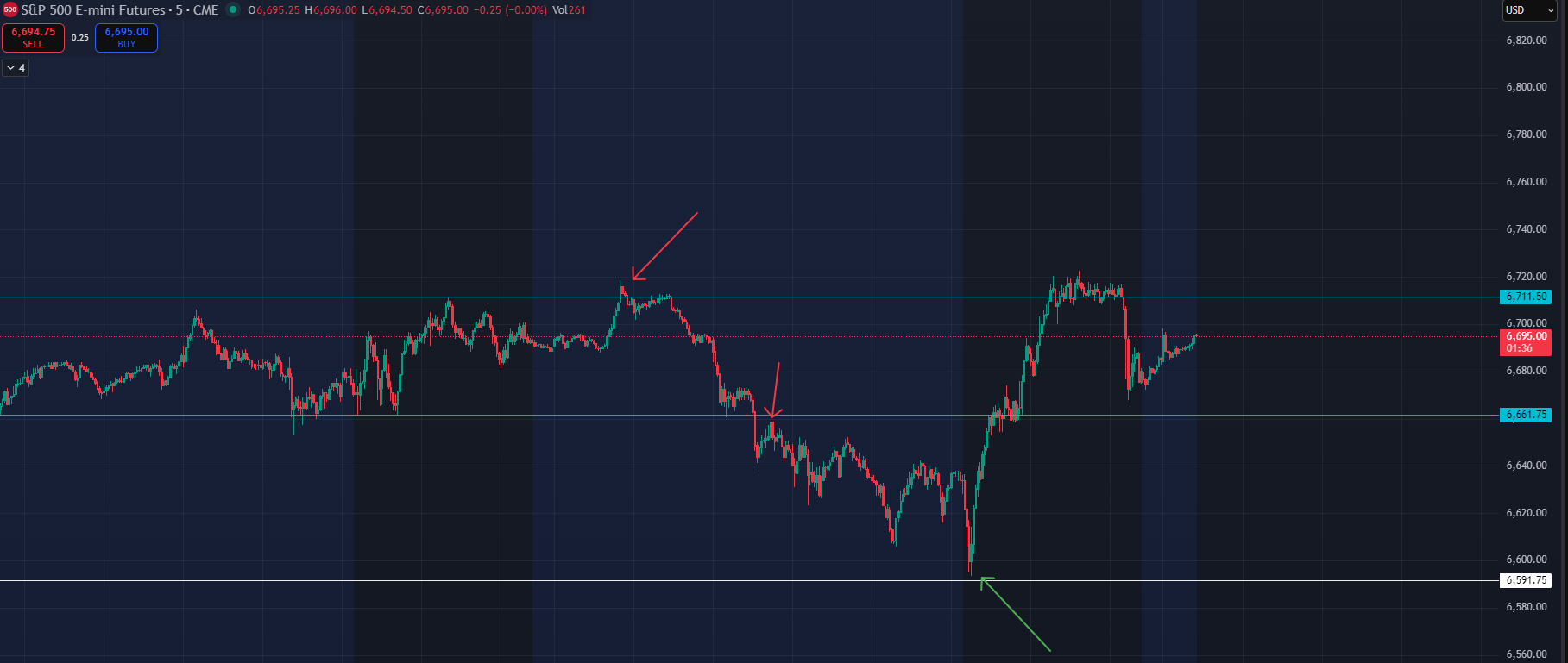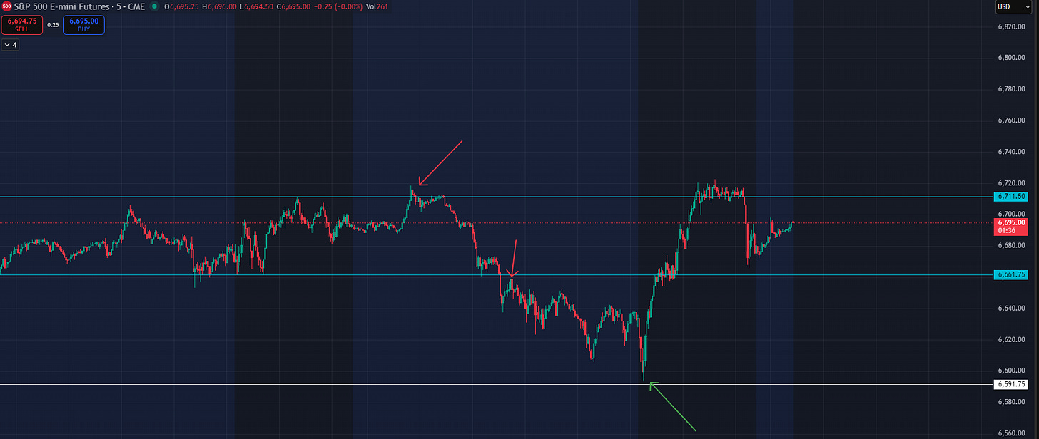 Yesterday’s cash hours high and low in blue, and Friday’s cash hours low in White: