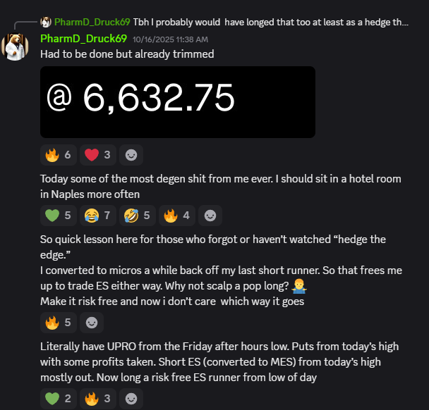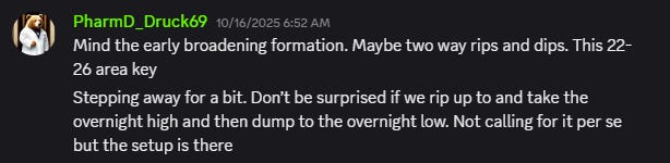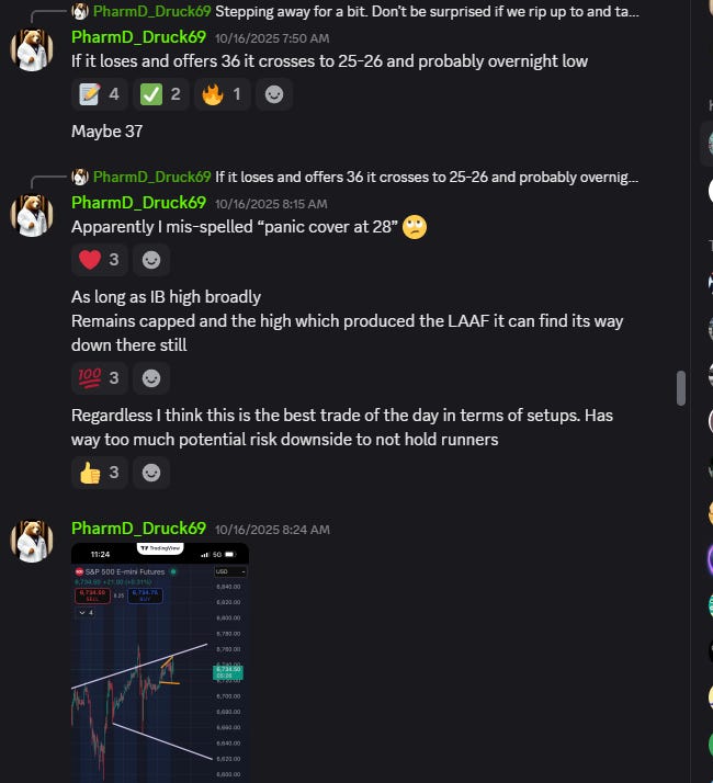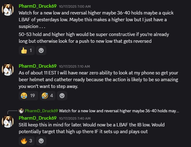 While the “mother bar problems” were an issue for a number of trading styles, those adept at trading both ways and with the patience to wait for great setups were rewarded handsomely. Though I was out of town, I provided one real time setup in the Discord on Thursday and one on Friday.