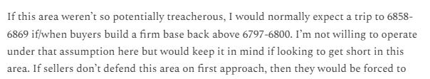 Sellers could have defended overnight, but they didn’t. They had buyers from the open in huge trouble and could have pressed through 6797-6800 and 6786-6790 but couldn’t or wouldn’t.