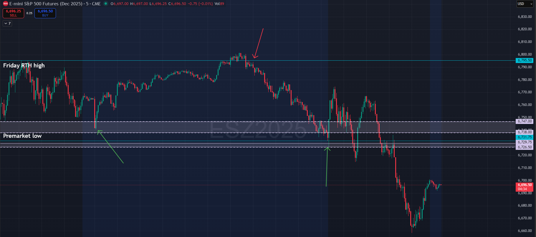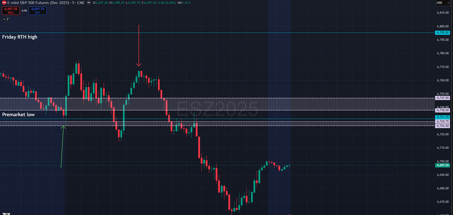 The planned trades for today were extremely minimalist. I added one premarket as well. They all worked extremely well whichever was chosen. I’ll just share the chart on ES but NQ was the same