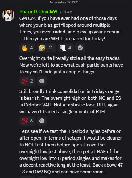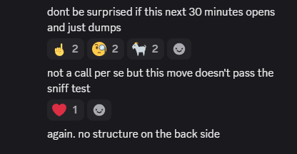 From there it was definitely an aggressive back and forth as had been suggested premarket. After making a new low of day at 11:15 there was a massive cover rally which likely looked very bullish to most. The following was posted at 11:55 EST: