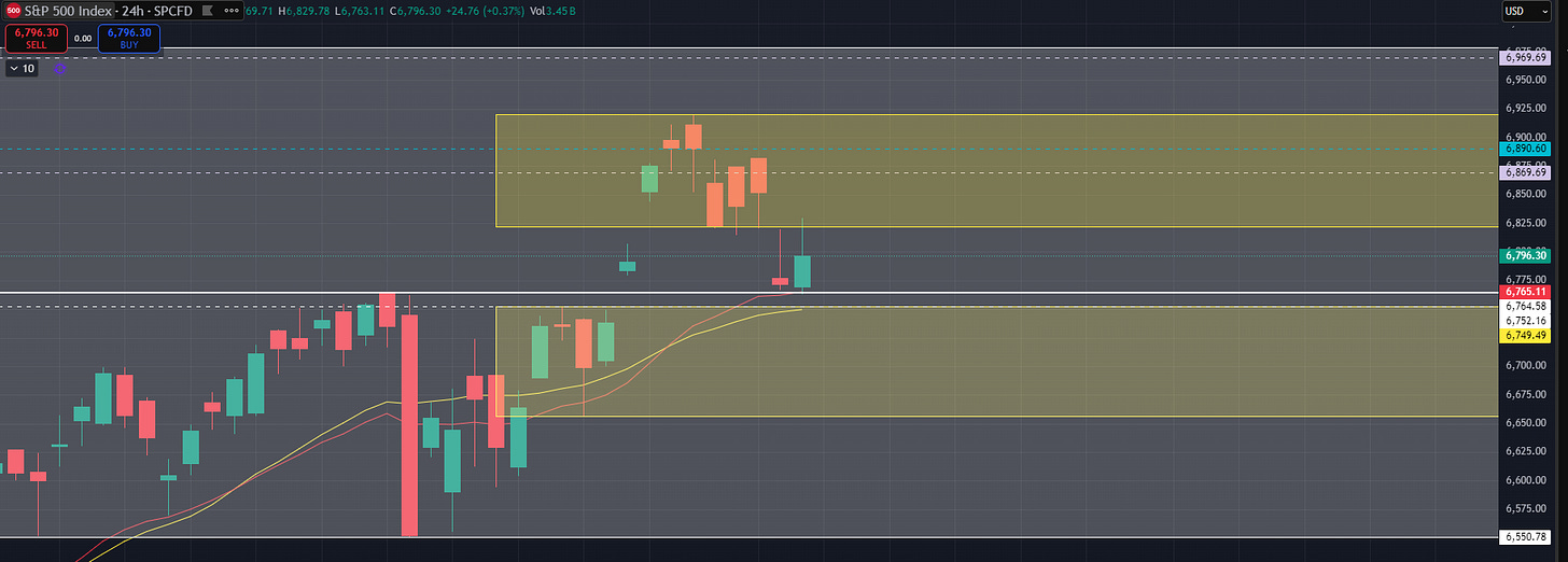 All that wild overnight action to open effectively flat, and the day ended up an RTH LBAF of yesterday’s low. During the overnight session, NQ tagged its 10/23 high in the weekly 25282-25292 range (an open RTH gap) and the yen reversed course 5-minutes later. NQ quickly reclaimed its multi-week breakout levels and never got past the daily 501 level during RTH. On a cash hours basis the big picture is essentially unchanged. Today’s low held the SPX breakout level (along with the 21-ema and 20-sma) perfectly, and today’s high rejected the prior 6-day range of consolidation.
