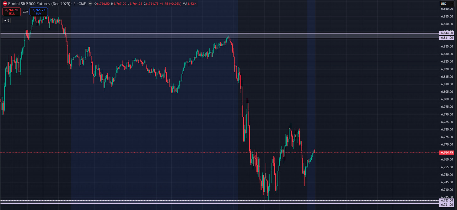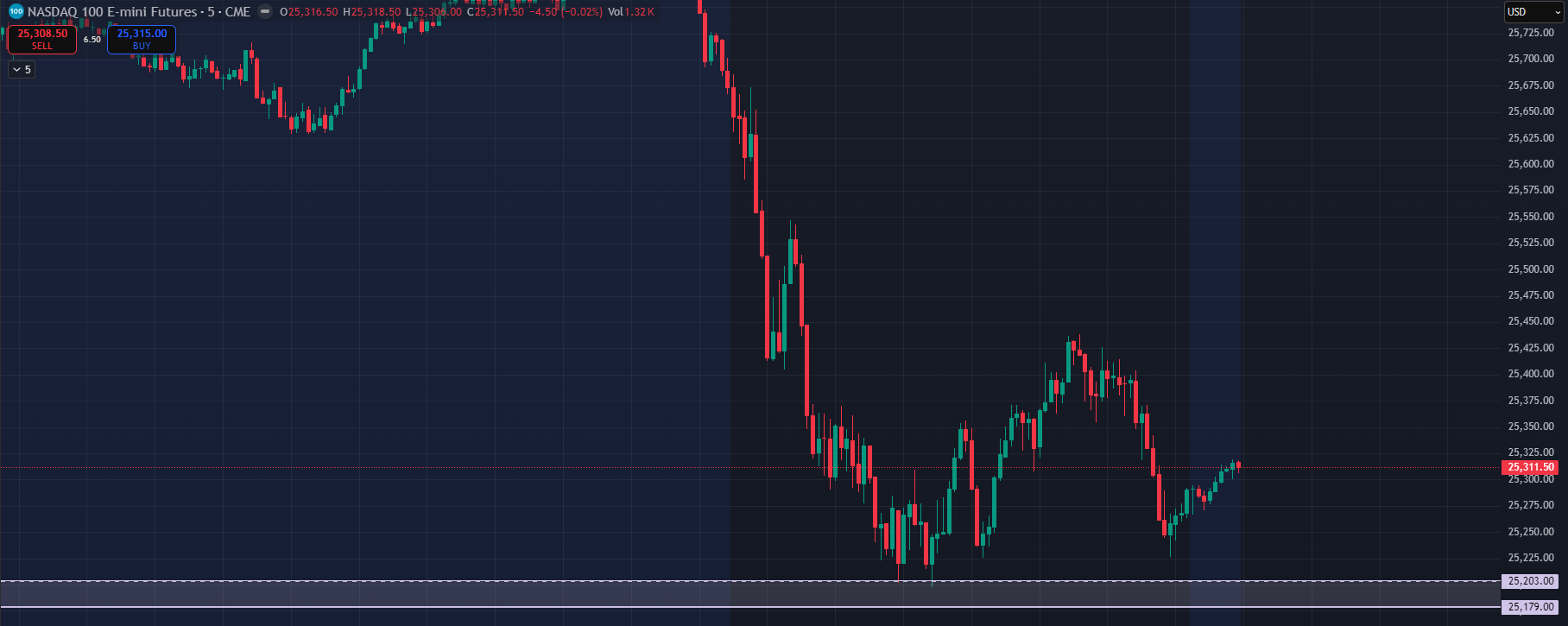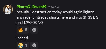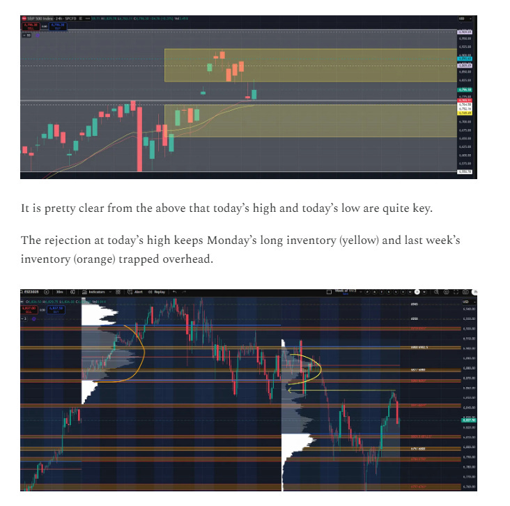 Buyers made one attempt to defend the breakout level during the morning, but once it failed, longs were no longer safe until the selling exhausted out at the NQ weekly 25179-25203 spot and ES weekly 6731-6733 spot (and even then still not favored)