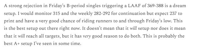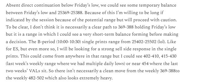 Note the overnight session held Friday’s low and NQ found temporary balance up to 369-388 before the hard sell.