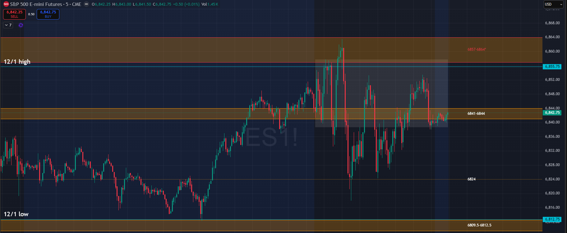 Neither side has demonstrated control over 6841-6844 and this week’s VPOC sits in that range (generally not a great area to initiate a trade).