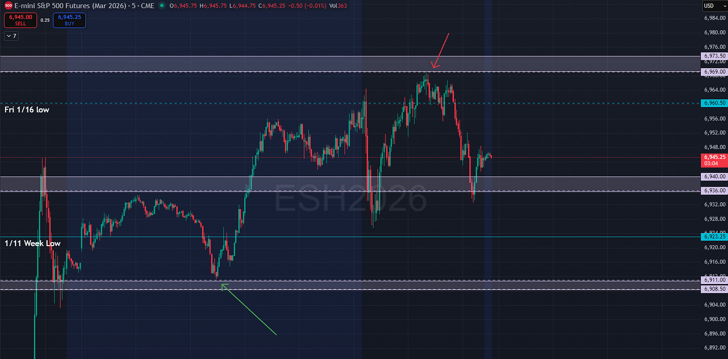 Bulls accomplished nearly everything they needed to today. The overnight low held the key 6908.5-6911 needed to trigger an upside break, bulls defended the gap fill reversal at open, and made a higher high stalling at the 6969-6973.5 level. This is effectively the “final boss” for ES bulls. This failure triggered a look above and fail of the IB high which triggered weakness into the close.