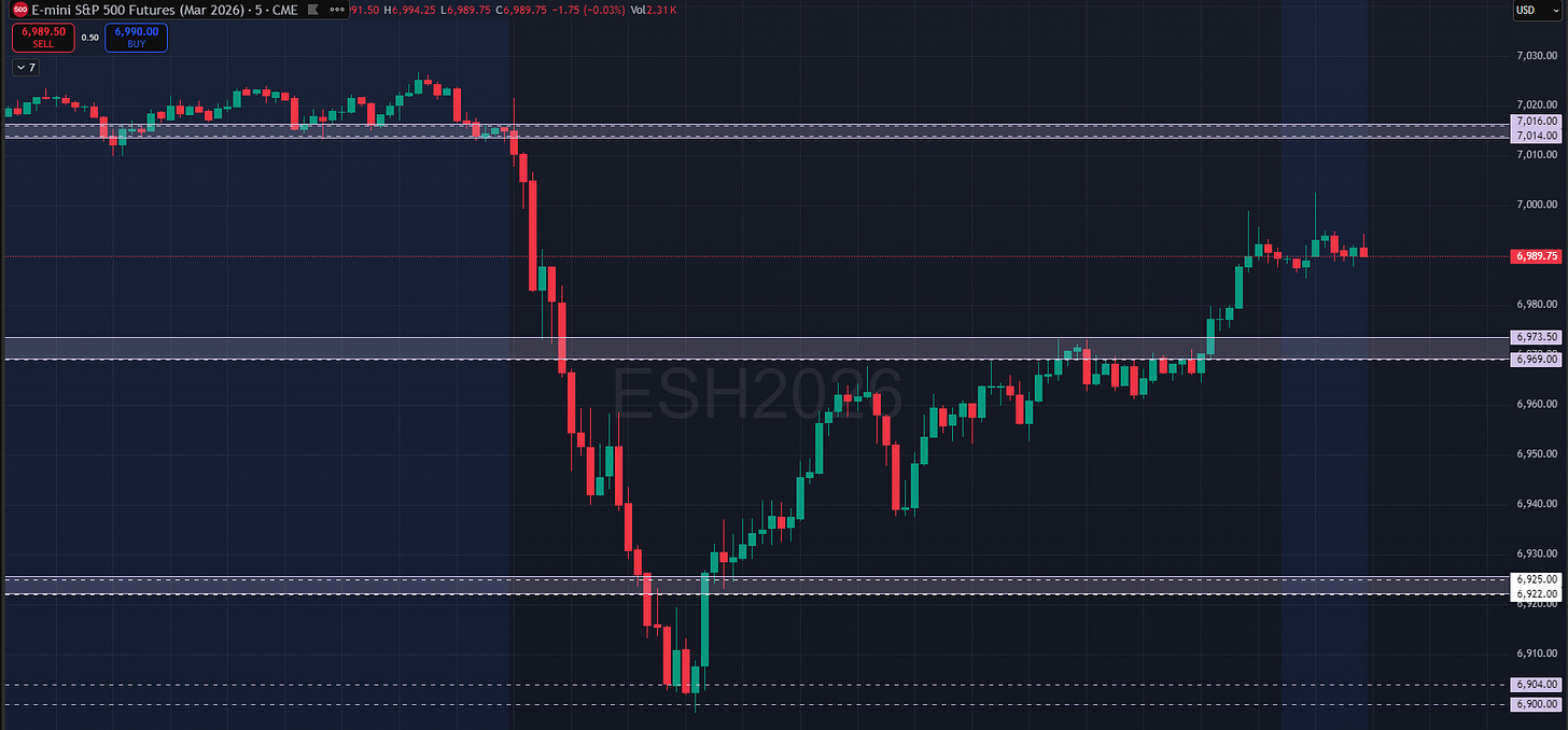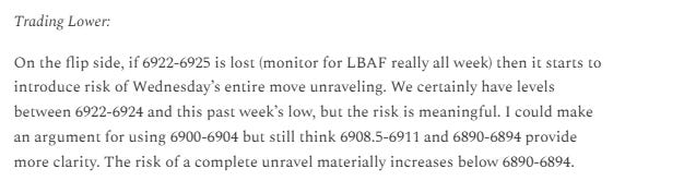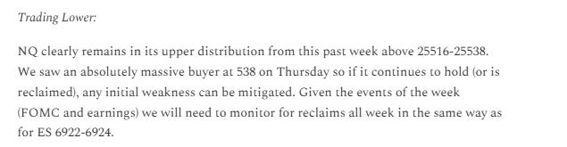 The key areas to hold (or reclaim) for the week were 25516-25538 NQ and 6922-6925 for ES