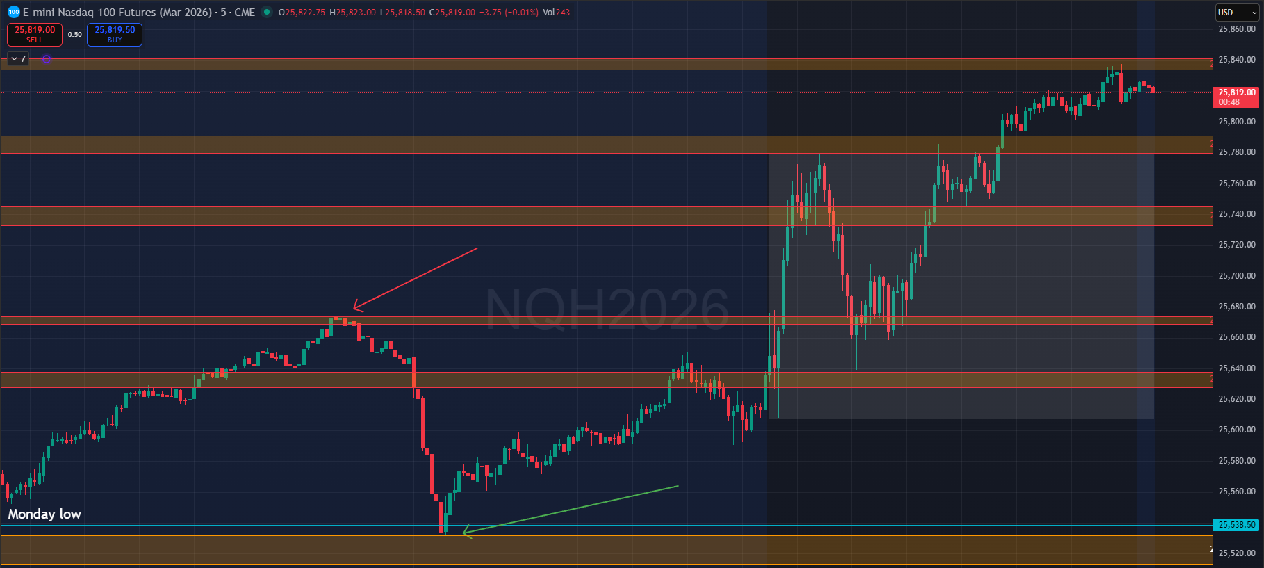 From there ES and NQ simply climbed the weekly levels, though not without some significant back and forth early in the cash session.