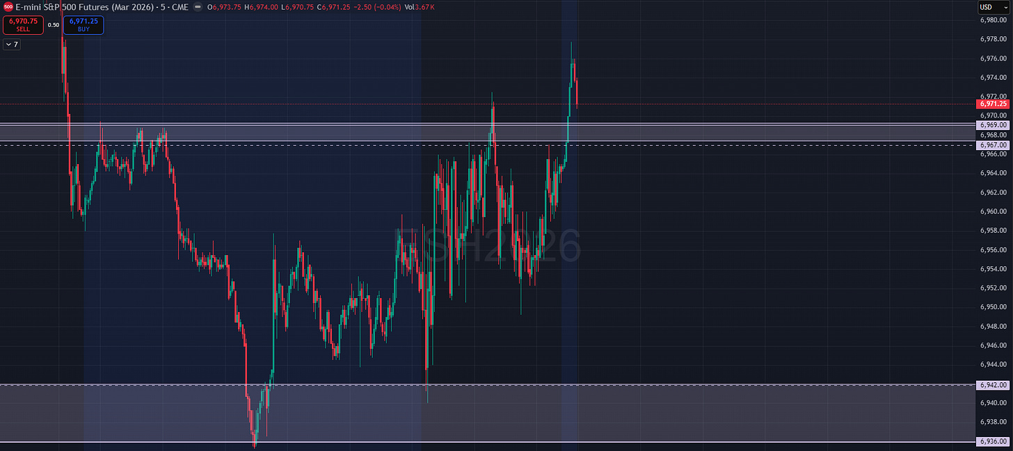 Today was a pretty tight range on ES but buyers held the major weekly 6936-6942 level they needed to hold to keep this a neutral consolidation and the potential for a slight higher low to be put in. Trading the short side on the way down was sweat free, but intraday was pretty choppy as once again NQ and YM had cleaner moves: