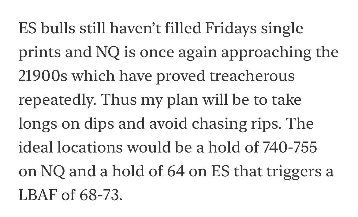 The markets have remained above our high time frame “pivots” for the entire week, favoring bulls, but truly the real test comes tomorrow. While ES has broken its recent downtrend line, the setup for tomorrow is one that often causes failed breakouts. We will continue to plan to buy dips until that is proven wrong, while maintaining awareness of the potential bearish scenarios. I’ll cover the area of concern tonight.