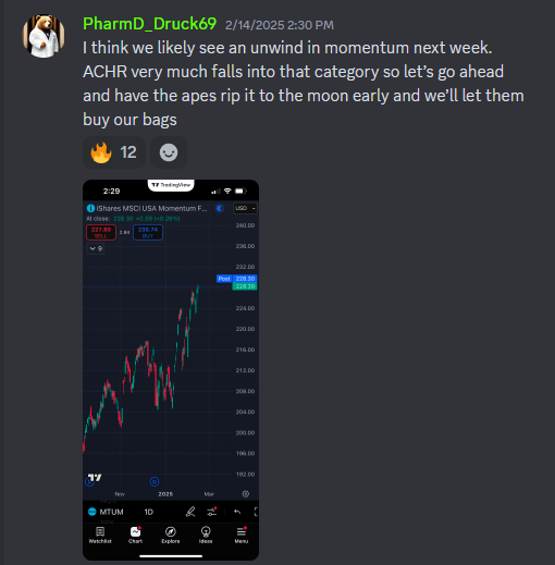Momentum had a pretty bad couple of days and ACHR did as well. Sidestepping drawdowns is often more important than nailing profitable trades. Capital preservation is always first for me.