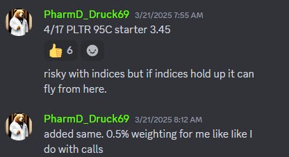 We had also taken some PLTR 0.00%↑ calls on Friday for a fun little trade.