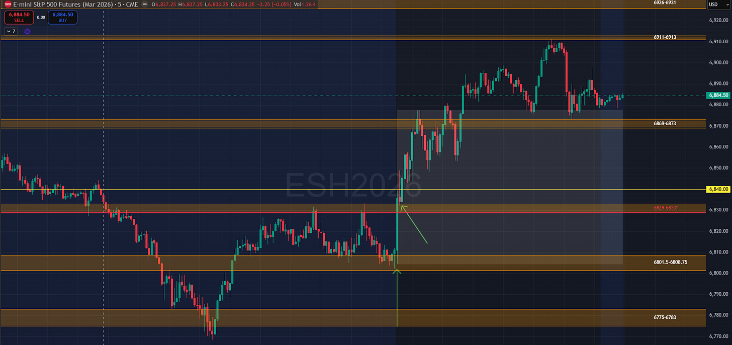 We have been using 6801.5-6808.75 as a weekly level within our yearly level for a number of weeks. While it has been traded through, sellers have never once made an attempt to properly defend it from below. It is range low until it firmly flips to resistance. We were also monitoring 6829-6833 as a reclaim would allow for a potential move to 6926-6931. The picture was effectively the same on NQ, which hit is major target today as ES stalled at our weekly 6911-6913 level. This complicates matters just a bit into tomorrow, which I generally prefer. It left us with some amazing trade setups on NQ in particular.