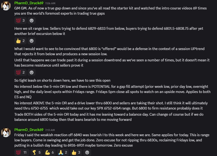 Note the 5-minute candle at open left no lack of clarity. From this morning’s update (included in Discord and Substack chat each morning).