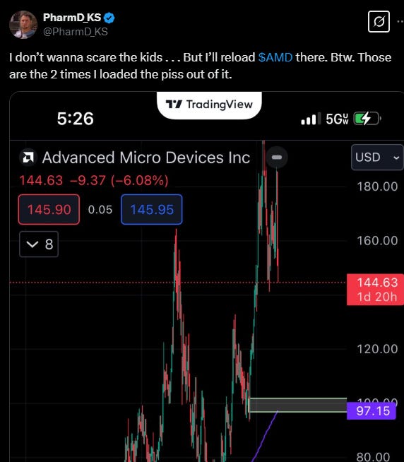If this spot is lost and flips to resistance, then a meaningful move lower could come quite fast. Thus far buyers have defended, and sellers have seemed a bit fatigued into the lows. The longer we base here, the better it is for providing a durable swing low. We have taken profit on a bunch of our puts and hold runners while adding to long positions such as AMD 0.00%↑