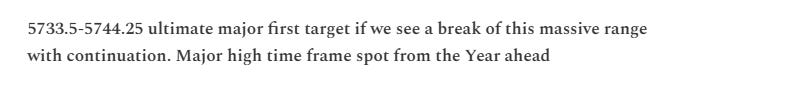 Our major target for this move lower was 5733.5-5744.25 and thus far the selloff has paused. This is an absolutely critical high time frame spot discussed in the “Year Ahead” video which can be seen here if you need a refresher.