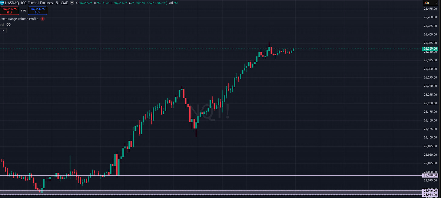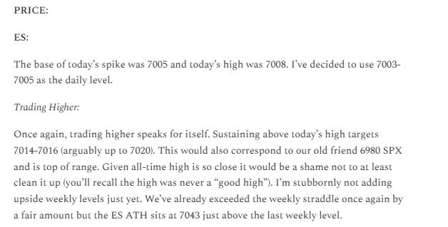 I posted on X and will reiterate here. I would strongly discourage attempting to fade a sustained break to new highs like this with markets in price discovery. The only potentially bearish setup from here would be NQ making a cash hours ATH along with ES and then failing spectacularly back in range. VIX expiration was today and monthly options expiration is Friday and this often tends to be a pivotal juncture, but if the break sustains, I personally won’t be looking for much in the way of shorts until given a damn good reason.