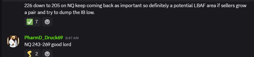 Sellers made a brief attempt to get back through 243-269 but it was foiled by 205, turning into a LBAF of the IB low for a nice long: