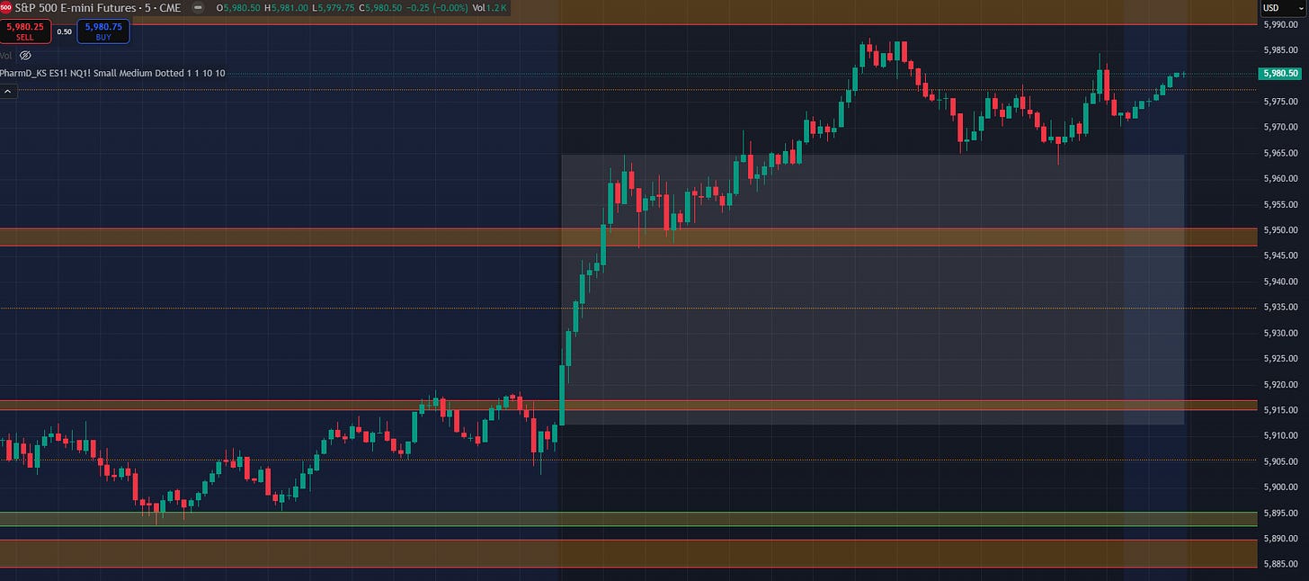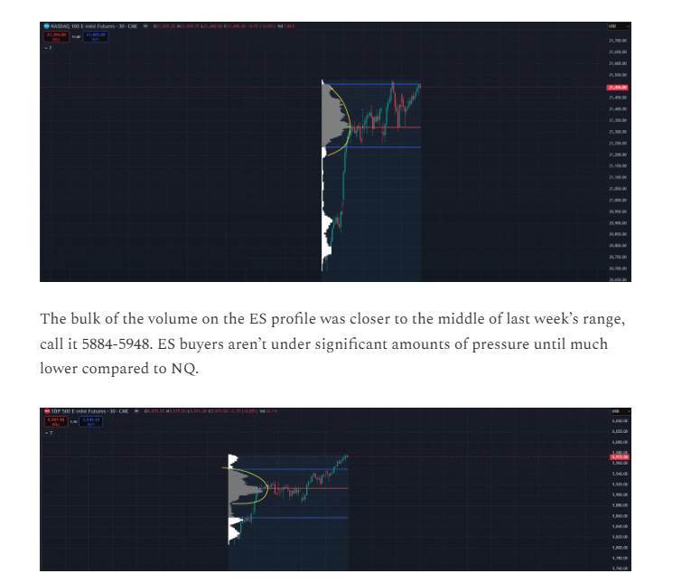 Notice that the weekly 5884.5-5890 level was never threatened on ES as it held what I (half-jokingly) call “inception demand”