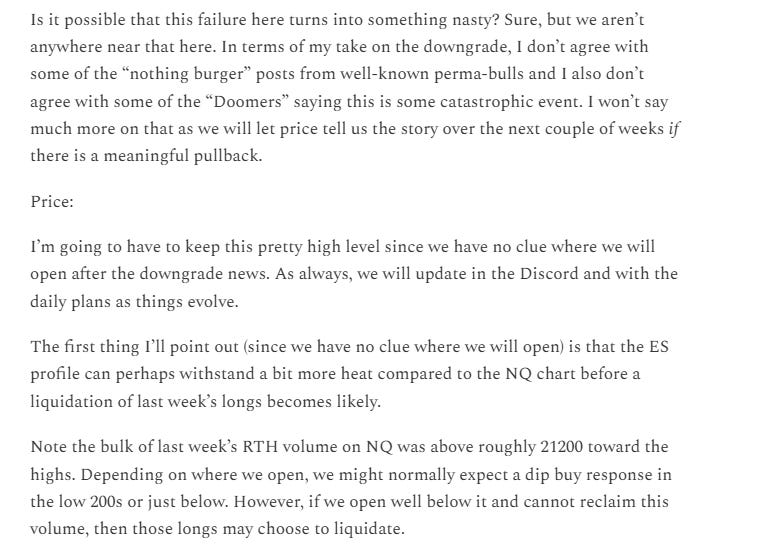 We let everyone else ponder whether or not the Moody’s upgrade was a nothing burger or a huge deal, and instead we focused on price. I’ll include a decent portion of the weekly commentary as it provides some insights as to how I use volume profile to keep a level head: