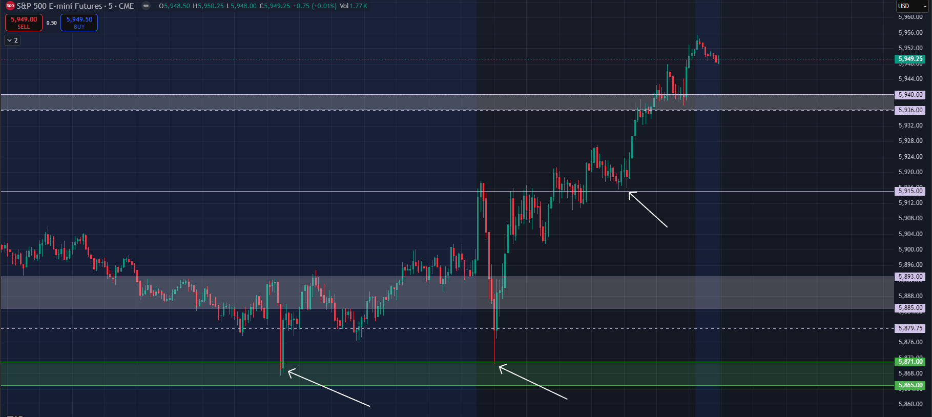 Once 5915 was finally bid from above we saw resolution to 5936-5940 the major upside target for the trade.