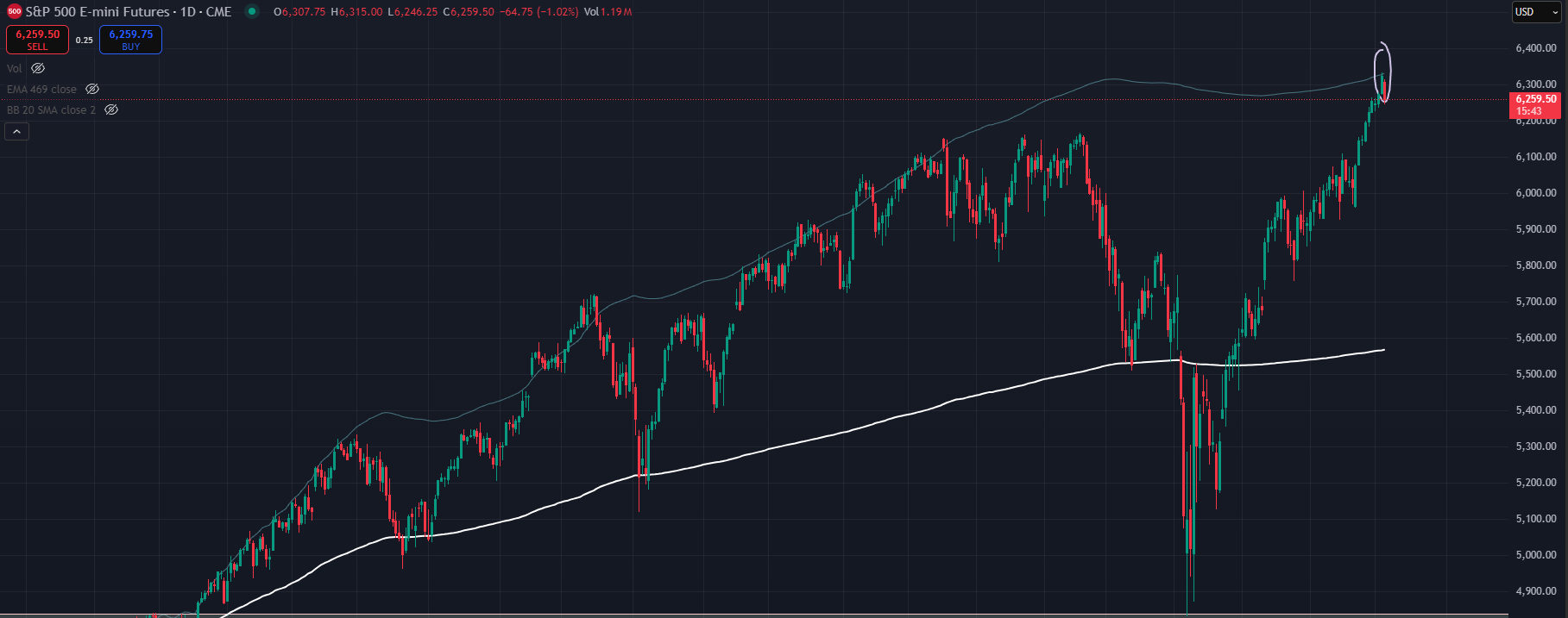 The narrative for today’s pullback was Trump Tariff Talk. However, as discussed in the weekly plan, NAAIM had hit effectively 100, ES had been riding its +2 Bollinger Band for 8 days, and reached its +2 standard deviation of the 2024 VWAP which had been relatively key all 2024.