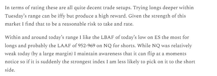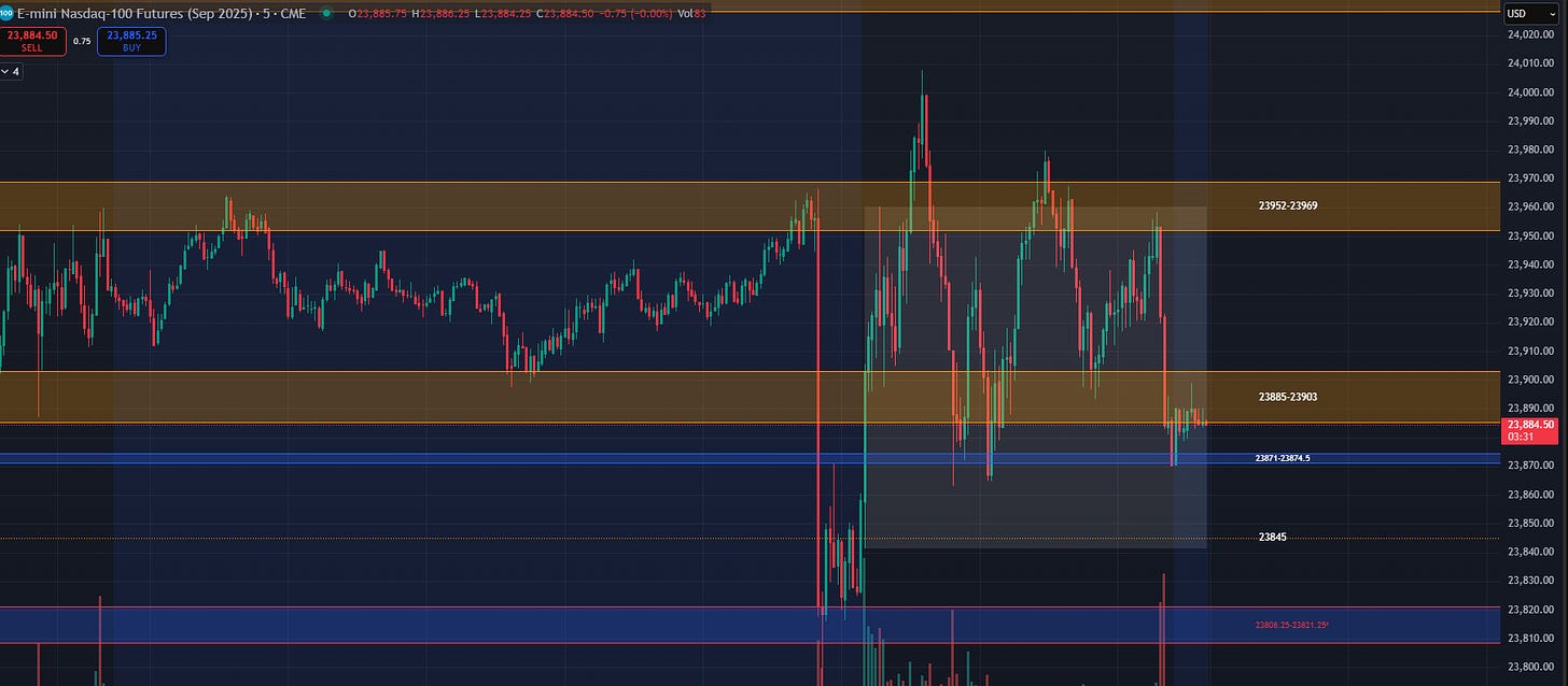 The better shorts were to be had on NQ. Failures in and above the 23952-23969 repeatedly produced rotations to the weekly 23885-23903 spot and obviously lower on the PPI data. NQ produced plenty of nice longs today as well but I preferred ES (or YM really)
