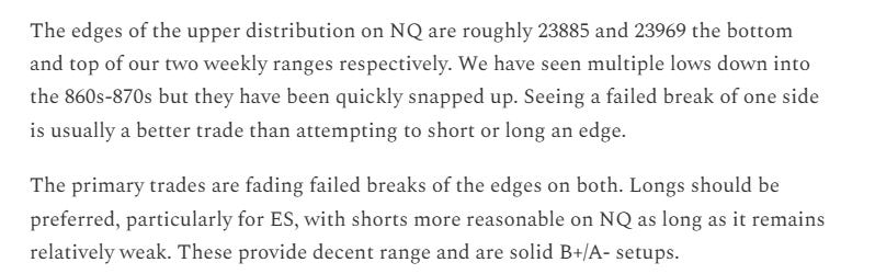 Keep in mind that long liquidations strengthen, not weaken the market. This, and any potential further liquidation serves only to give stronger bulls an opportunity to find a daily higher low. While a change in character out of OPEX is not uncommon, my plan A is to look for this daily higher low. Plan B will be to simply react and join sellers should they prove themselves this week.