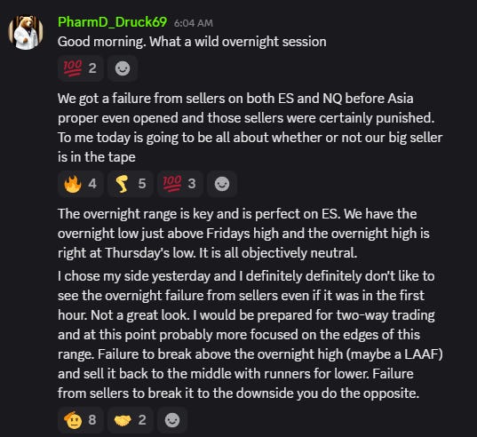 The LBAF was a bad look for sellers. If it had been a cash hours LBAF I would have been long, but kept an open mind into cash.