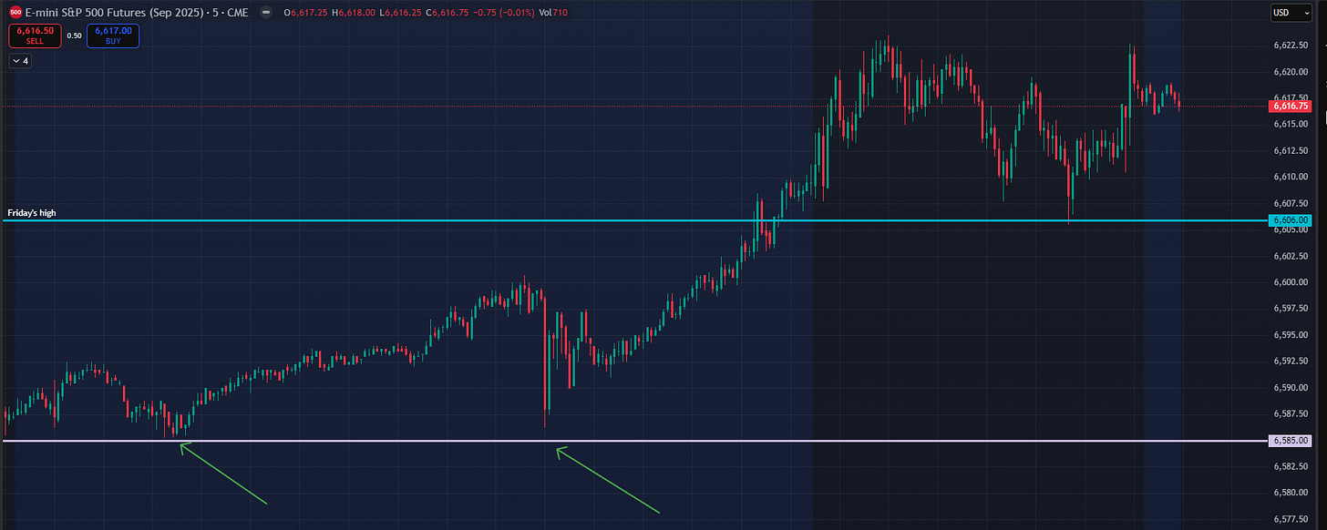 Coming into today we were monitoring 6585 on ES (September contract) and the plan was to be long if sellers failed to find any traction lower:
