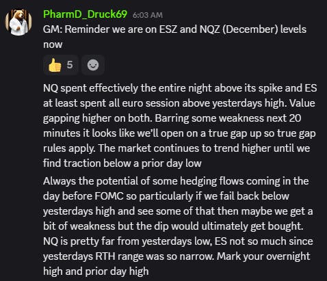 Today was a great example of application of the starter kit. After an absolutely massive move overnight, ES and NQ faded significantly off their respective overnight highs, but both still opened on a true gap up.