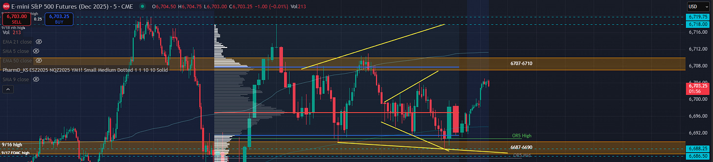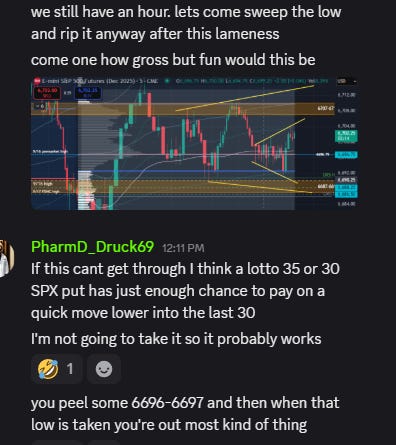 We longed the back test of 6687-6690 just before noon and had a fun little trade into the close that I’ll be doing a video on to explain in the near future. 6635P on SPX went $1.25 to $8 and the 6630P went $0.6 to $4.5. The long part of it was a bit late in the day but worked nonetheless.