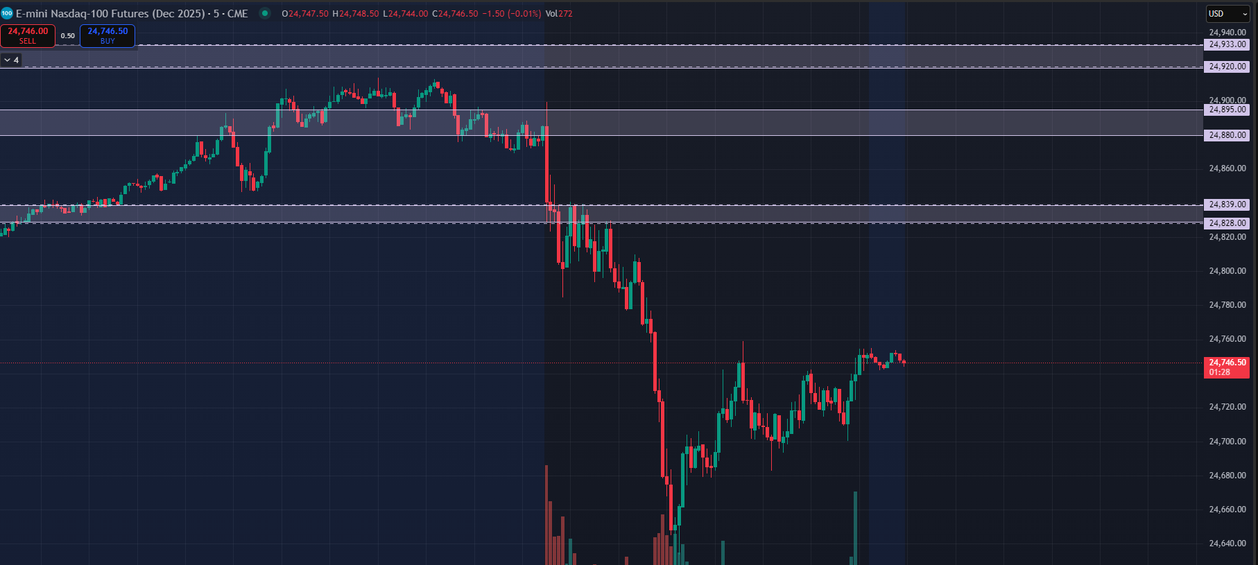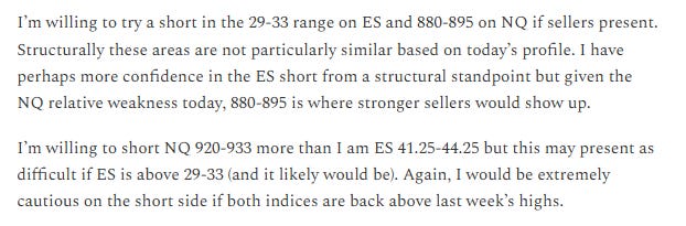 NQ traded just below 920-933 premarket, opened within the 880-895 range, and was immediately sold through 828-839.