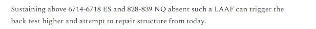 After sustaining above 24828-839 on NQ and 6714-6718 on ES, the back test higher was triggered.
