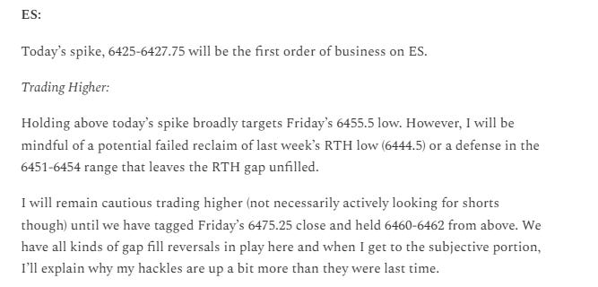 The first order of business on ES SPY 0.00%↑ for today was whether or not buyers could sustain above yesterday’s spike at 6425-6427.75.