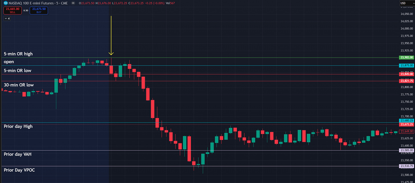 Break the 30-minute OR to the downside with continuation. This last piece is not in the starter kit but we’ve covered in the Discord in terms of trading true gaps (time to update the starter kit).