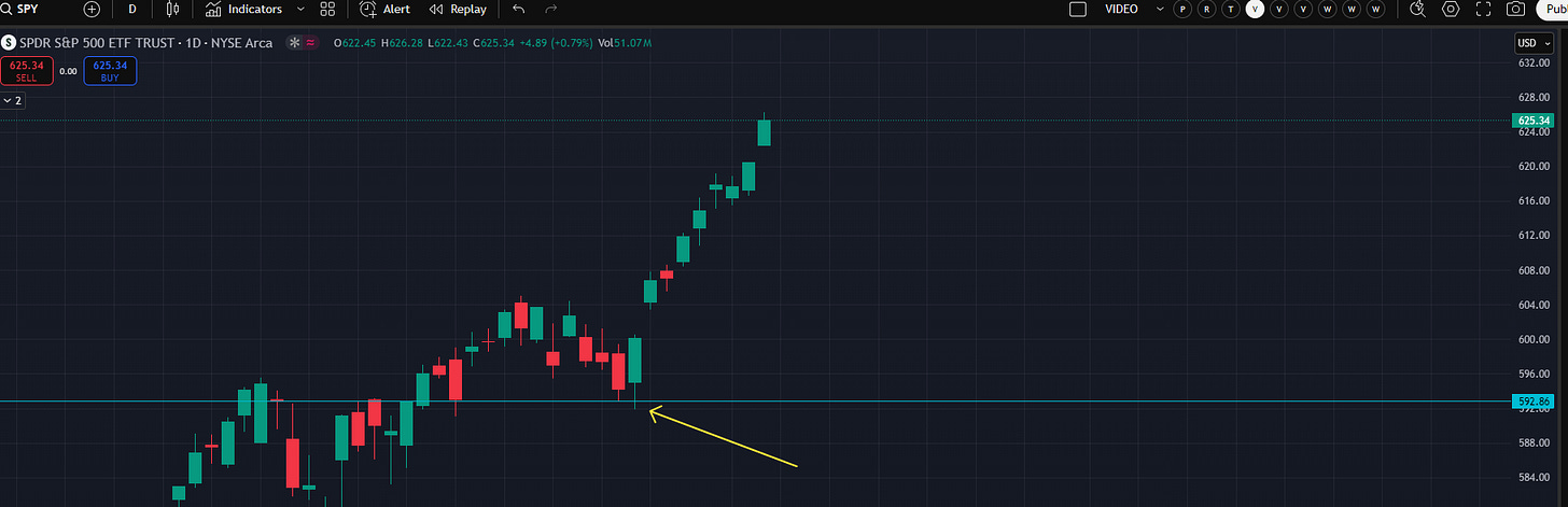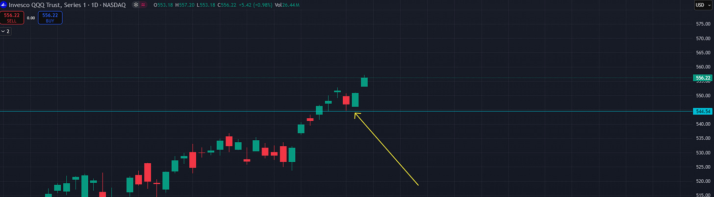 QQQ 0.00%↑ paused only briefly, setting up its own trap. Tuesday of this past week, the Qs traded down to the prior Friday’s low, forming a 3-day balance. Wednesday premarket swept those relative equal lows and it set up the best trade of the week.