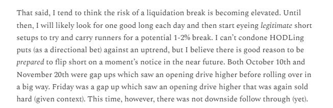 In last week’s plan, I said I believed the risk of a liquidation break was elevated and that I would be looking for legitimate short setups to capitalize.