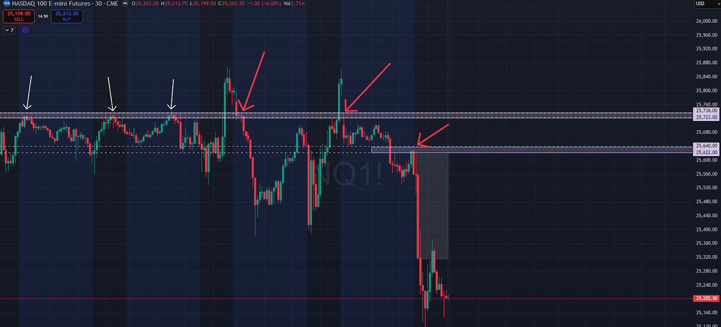 The 730s on NQ in particular offered numerous multi-hundred handle short trades. The Wednesday night’s trade for Thursday was to get short on a failure back below 730s (more powerful after a failed break) and the same thing happened both nights. Wednesday night produced 350 handles and Thursday night produced 600.