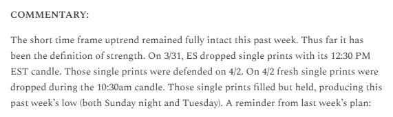 In last week’s plan, the strength of the uptrend was once again noted. It has remained incumbent upon sellers to negate it. From last week’s plan: