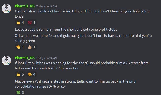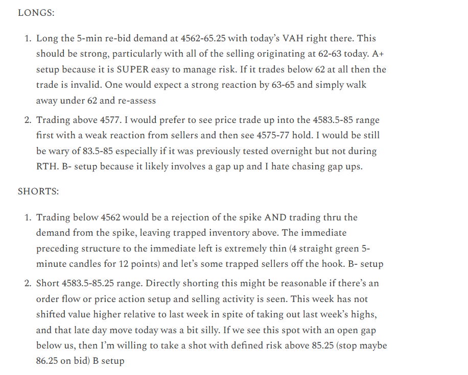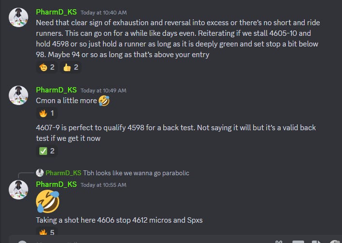 Recap of today’s trade setups with some explanation as to why long setup #1 was rated an A+ setup, why long setup #2 was a B- and why I advised against taking it this morning in the Discord. Also added some commentary about how/why I shorted 4606 with confidence. Reminder that the Discord is free to paid substack subscribers so make sure you request access if you haven’t.