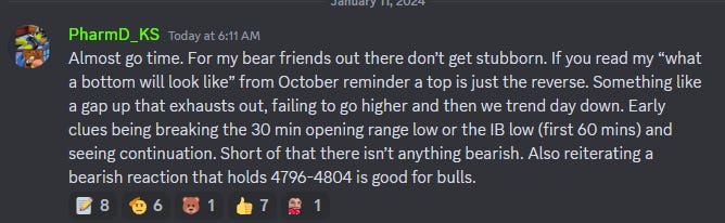 This then brings us to the second part of last night’s commentary regarding what we would need to see in order to get short. This was reiterated this morning (along with patience for my bear friends) in the discord 20 minutes before the CPI print:
