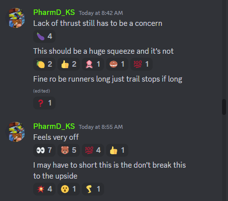 Here is the balance range referred to in the discord post and you can see the move out of it. Take the breakout from this balance, be prepared to stop out if it pulls back in range, and certainly a hard stop at LOD is the way to play this: