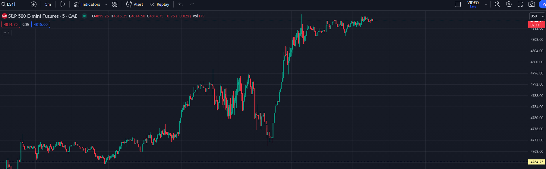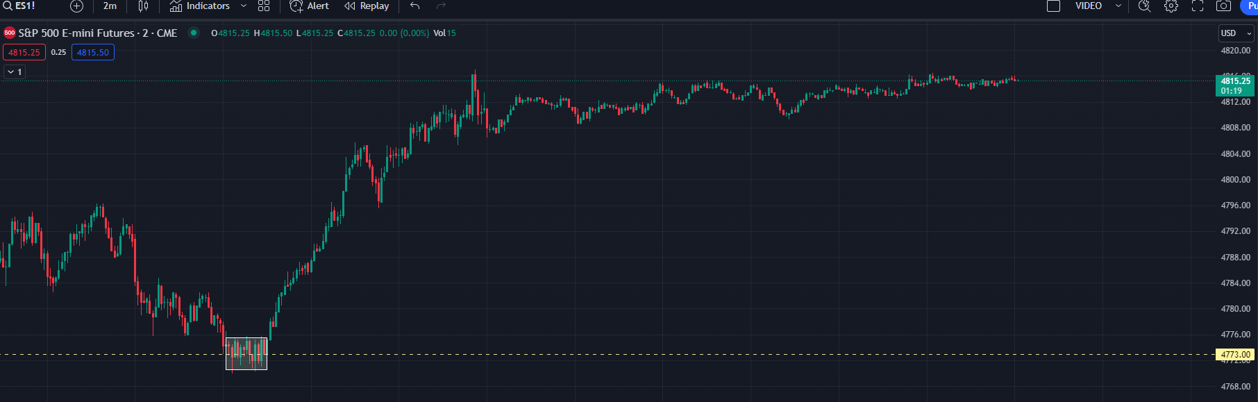 The low of the session was 4763.5 well within the stop for this trade, and ES never looked back