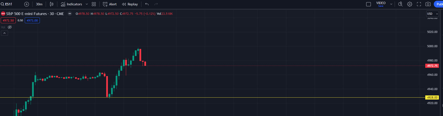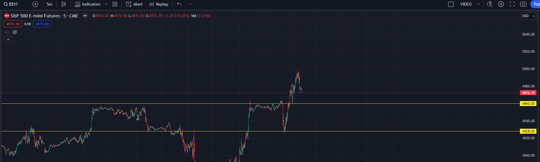 Without understanding my terminology at this point (abbreviations and videos available in the discord), the clean technical back of this spot can be seen by zooming out and looking left. Breakout→backtest-> Resumption higher. 4960 sellers had indeed become 4960 buyers (resistance/support flip):